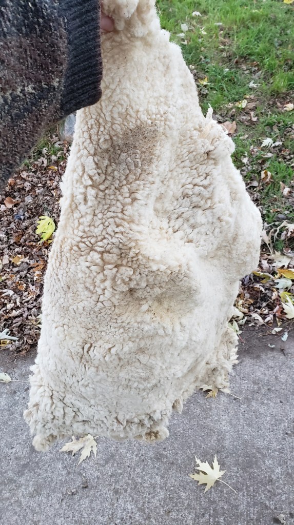 I applied my tanning dressing (soap, water, and neatsfoot oil) to the big creamy wooly one; I don’t think I had done so in ’19, and I don’t think another coat will hurt anyway. Here’s that guy: