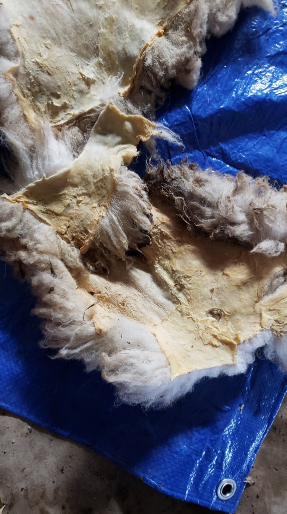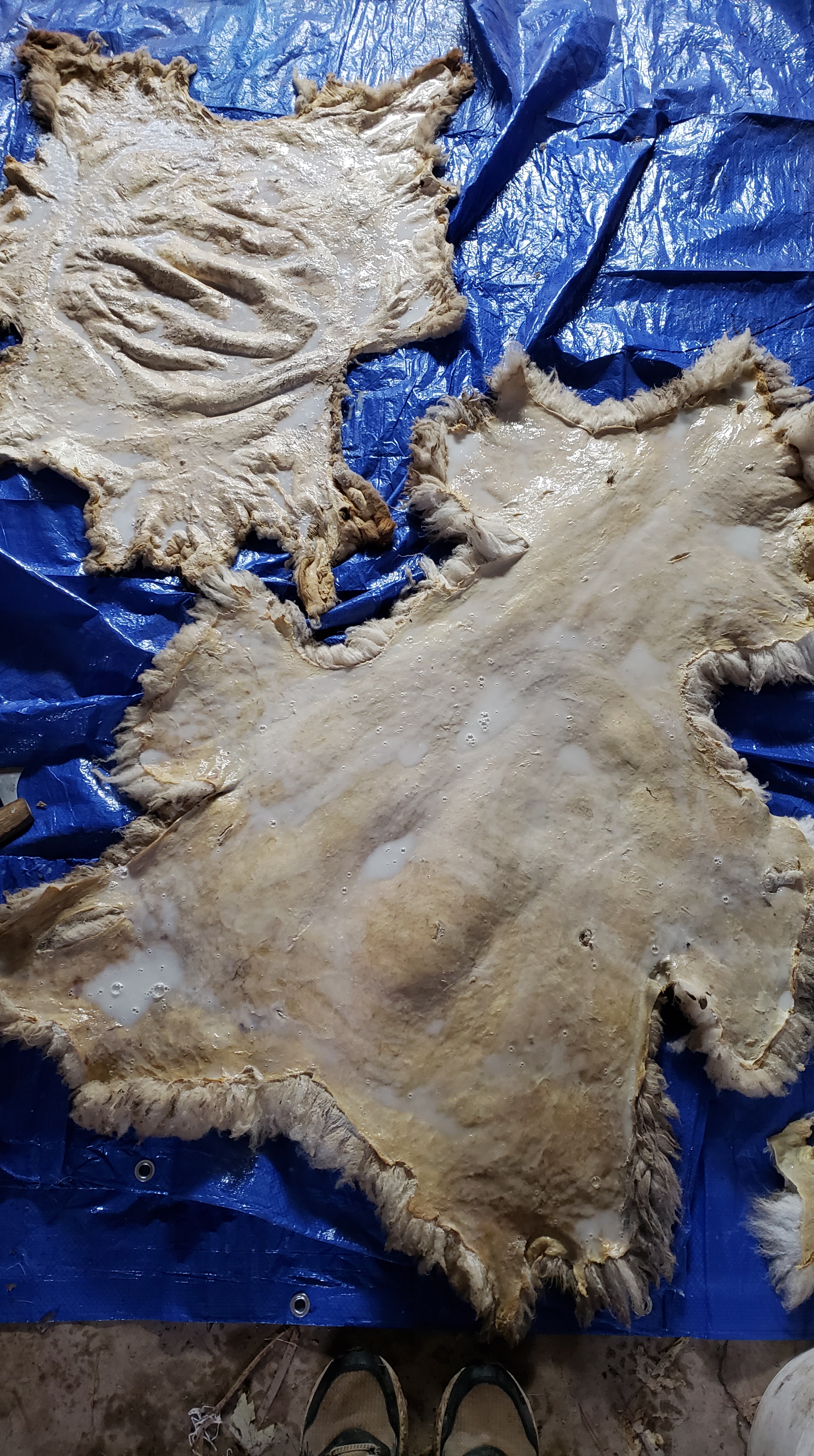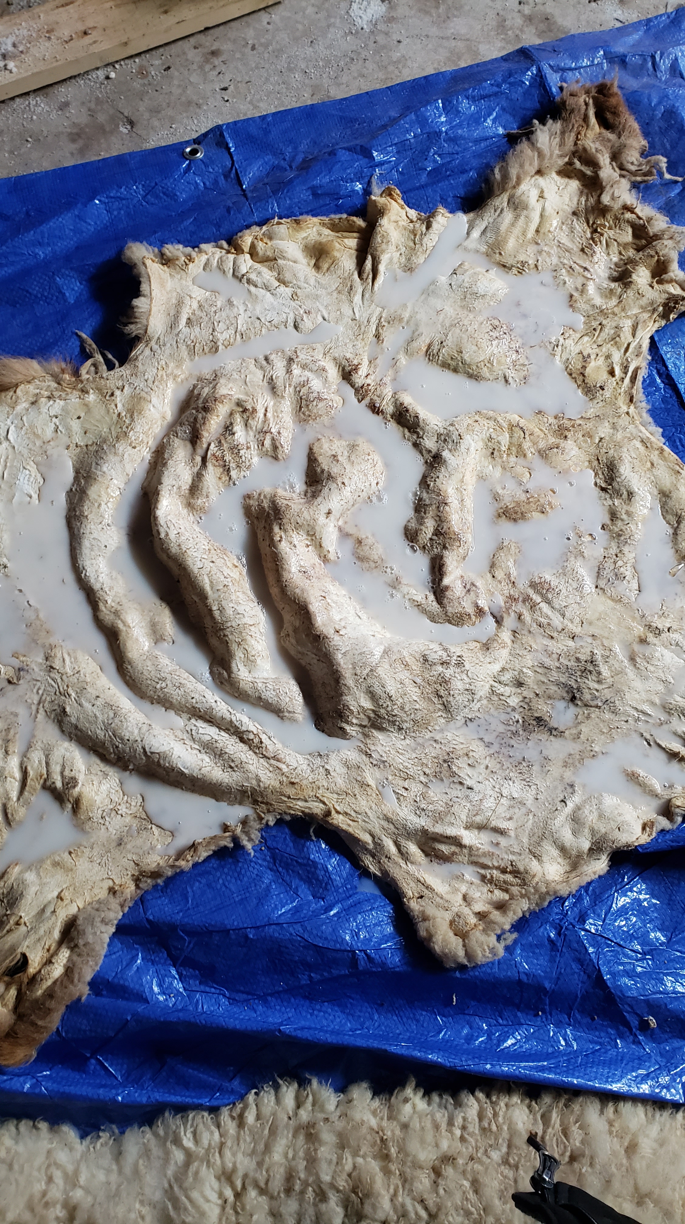 Progress on sheepskins today! I scraped the shearling that I’d recently pickled. It was mostly done already, but I got some membrane off.