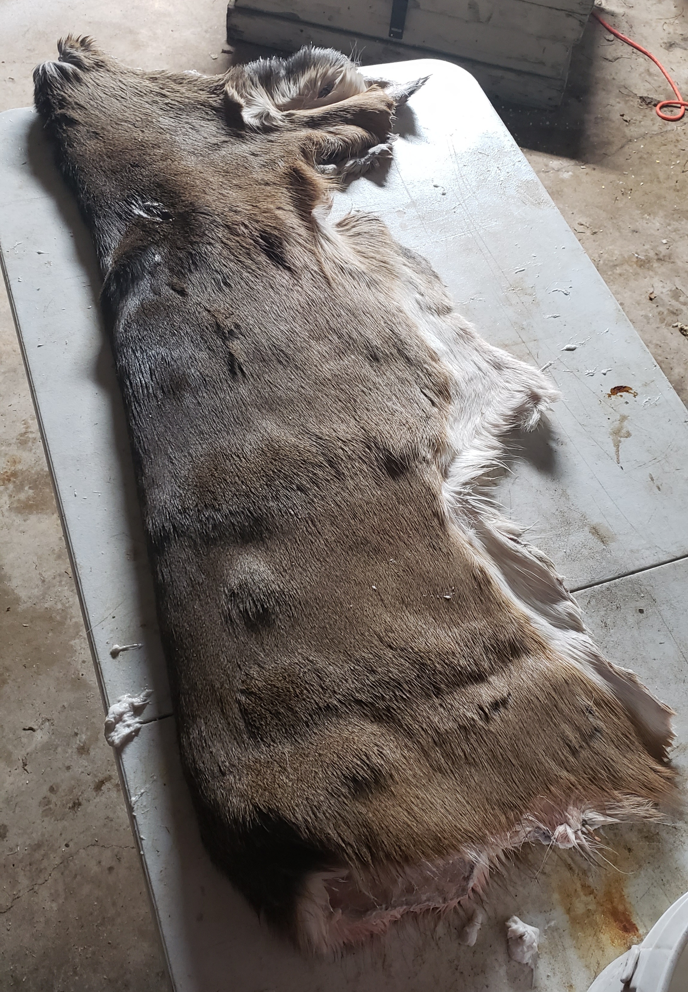 Next up? Scrape, stretch, and break the deer. Smoke it with the sheepie. Maybe I’ll be done in a week.