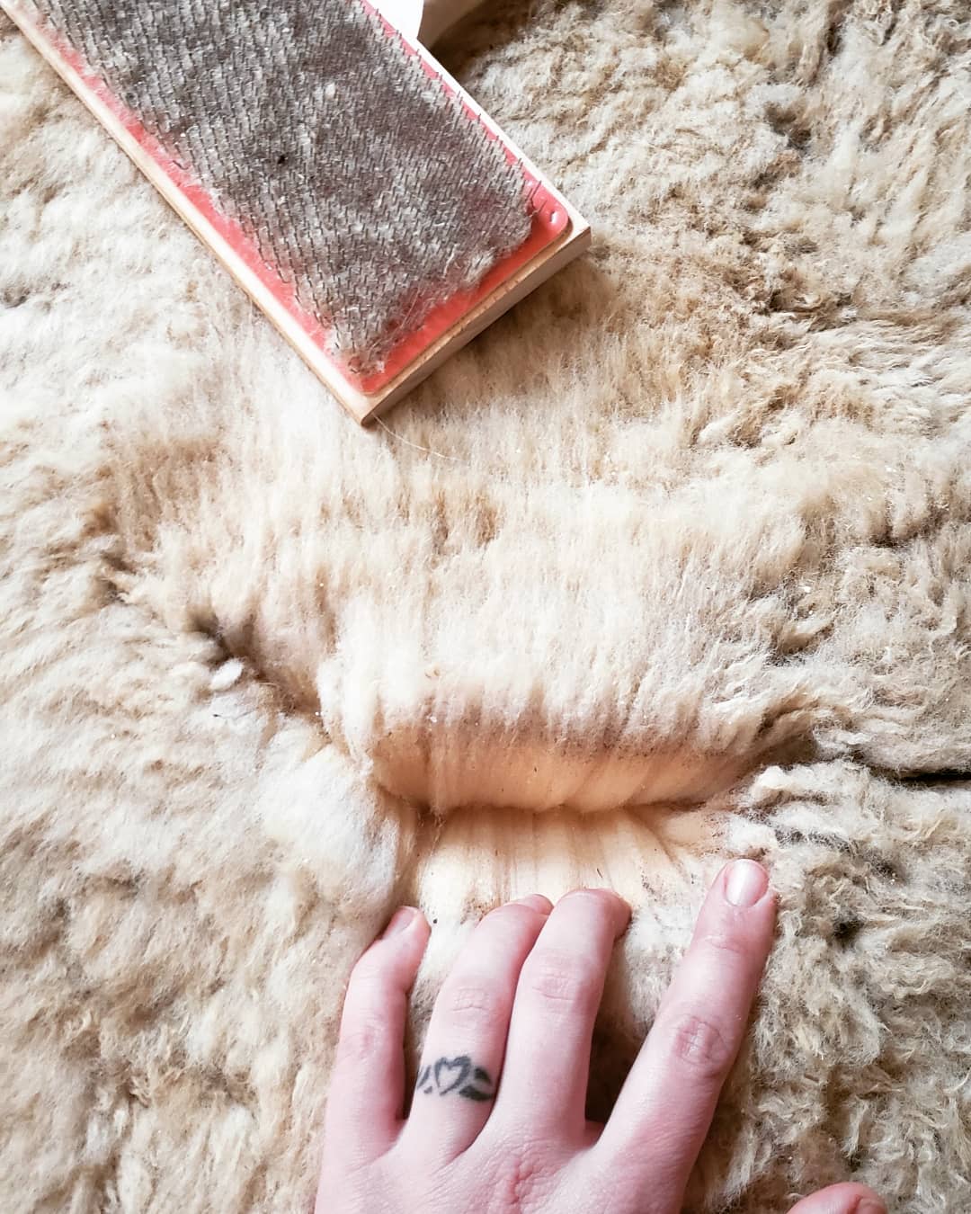 I also did some more brushing out of the egg-dressed sheepskin today.