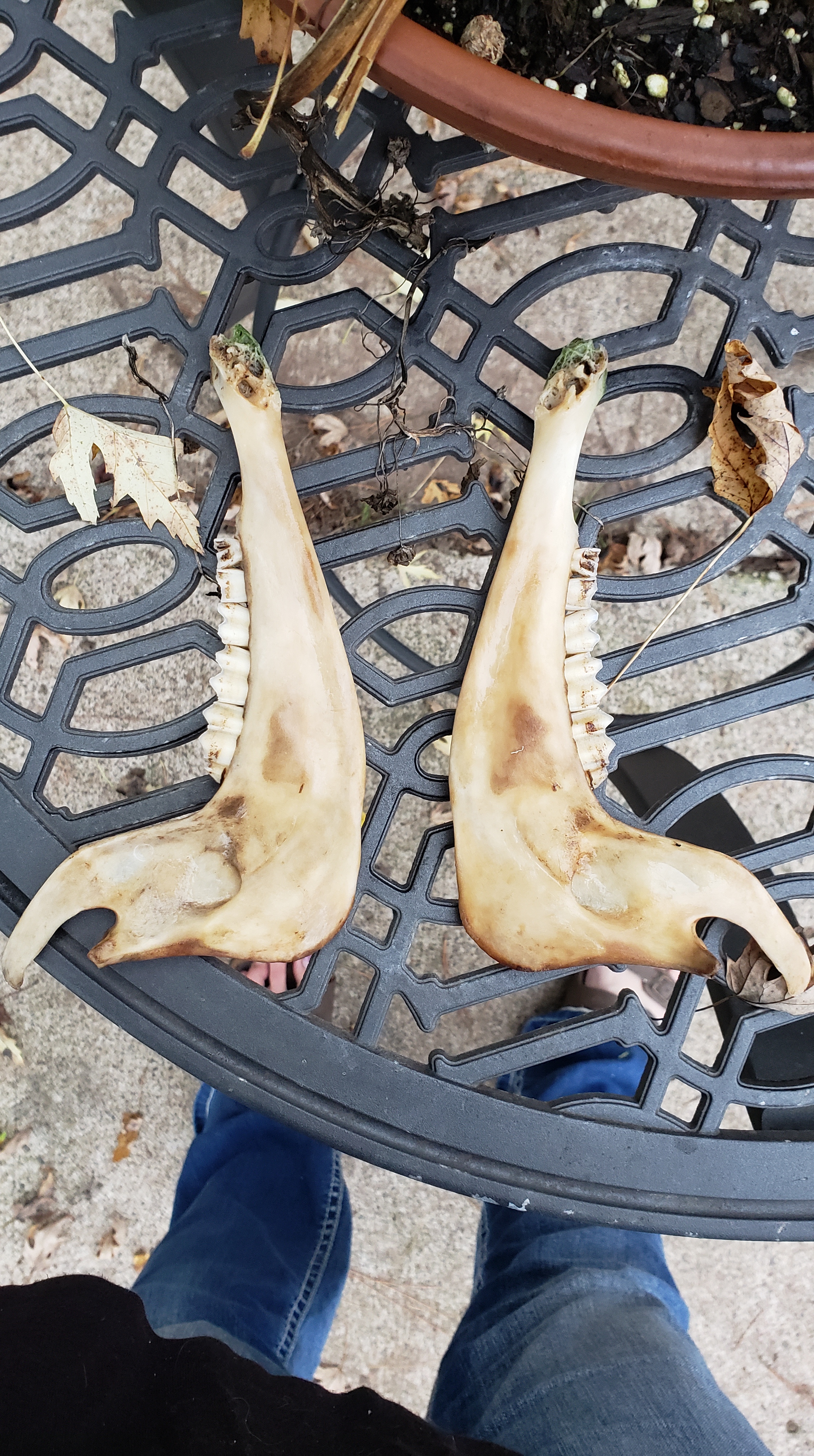 Also, I haven’t forgotten about big and wooly! That sheepskin is needing its dressing and smoking, but honestly I wanted to test this tanning dressing on a hide I care less about first, since I haven’t made it in a while. If all goes well, I’ll be smoking the big one, the shearling, and maybe even the un-stiffened one sometime this week.