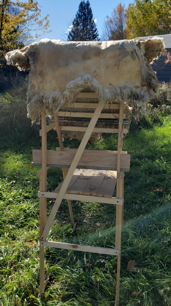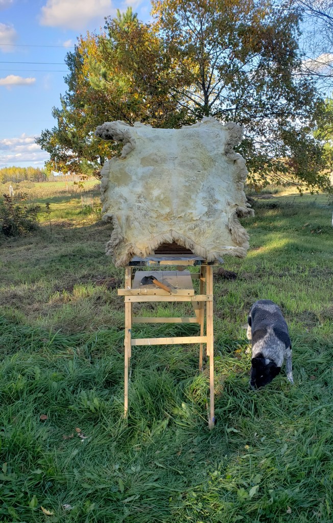 I dragged one of the 2019 wooly skins into the front room of my house; it’s the least nice room and unfinished, so I feel justified doing weird and dirty projects in there.