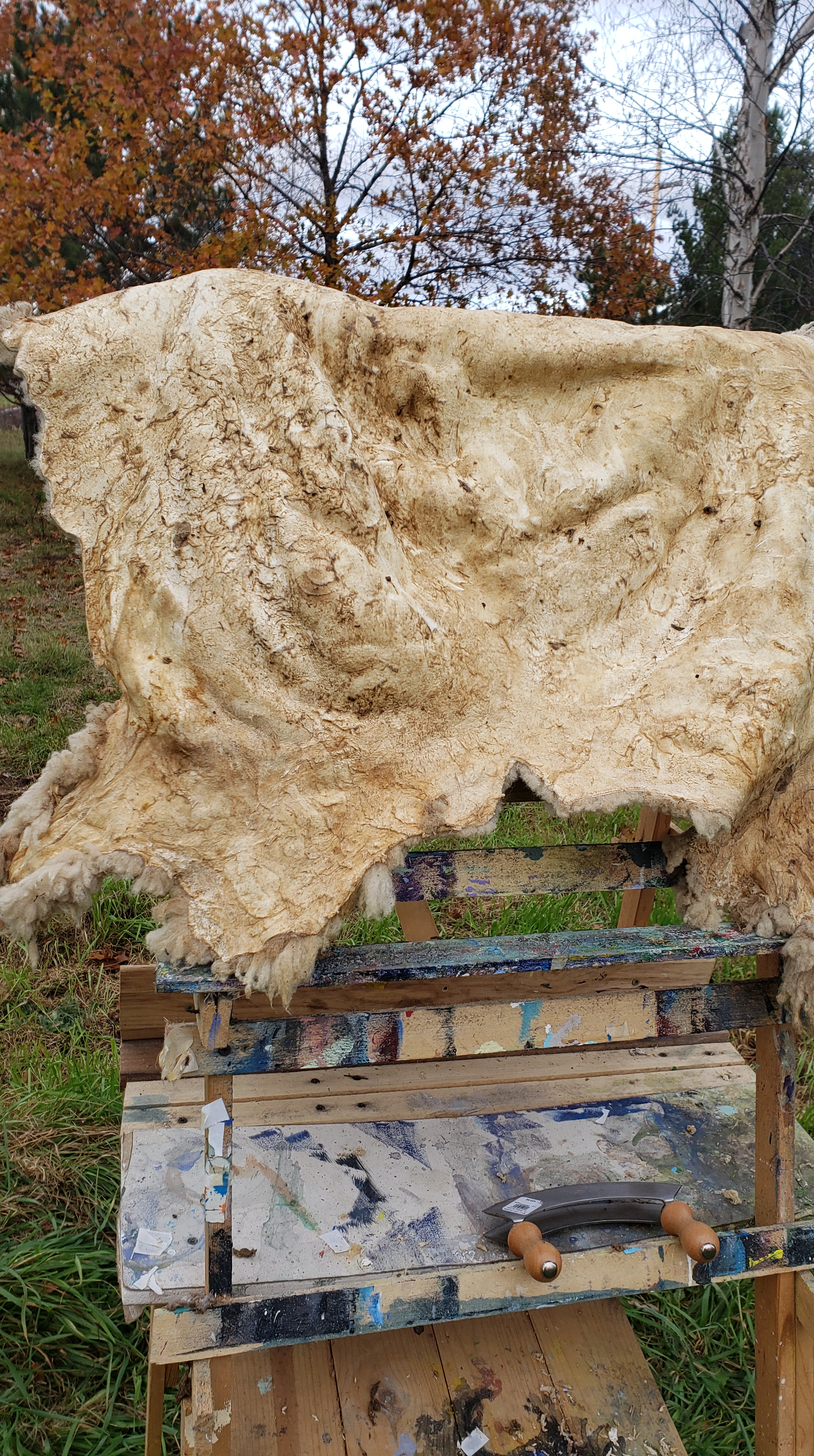 I dug around in my stack of 2018-2019 sheepskins today with the intention of choosing which one to start with. I honestly can’t remember where I left off in the tanning process with any of them, only that I’m sure I hadn’t gotten as far as smoking.
