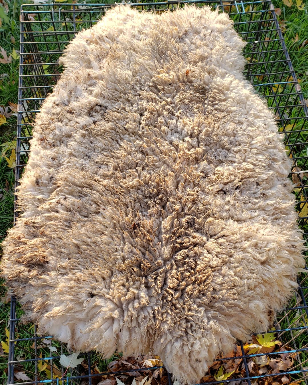 Yesterday I gave the two wooly skins a final brush out and pick through, and called them finished.